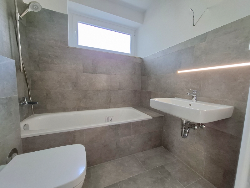 Die Wohnung befindet sich im Erdgeschoss und ist mit einem gefliesten Wannenbad sowie einem separaten WC und einer Loggia ausgestattet. Ein Kellerraum, sowie eine PKW Parkplatz sind seperat buchbar.