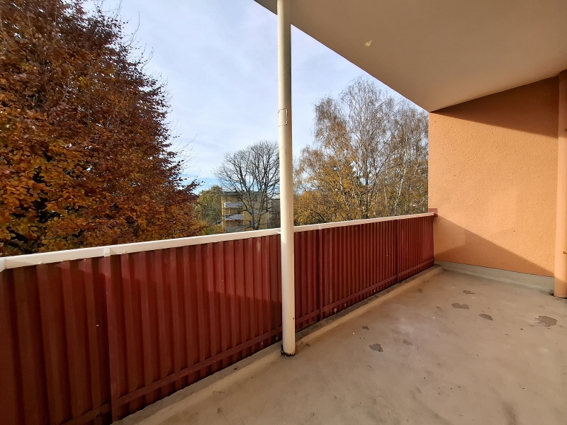 Vom Wohnzimmer aus gelangen Sie auf den Balkon, der zum Entspannen im Freien einlädt und einen schönen Blick ins Umfeld bietet.