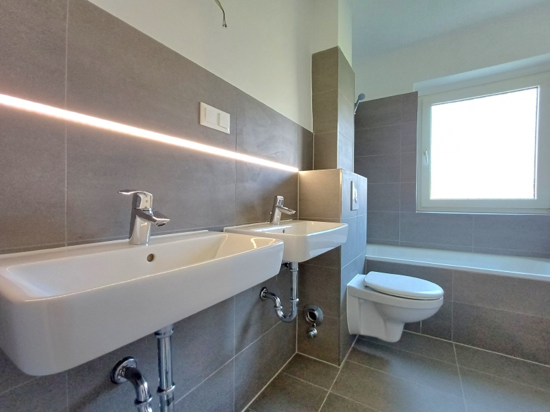 - Die Wohnung ist mit einem gefliesten Duschbad mit Fenster ausgestattet.