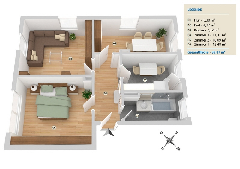 Hier können Sie sich als Familie oder Pärchen wohlfühlen. Diese charmante Wohnung bietet Ihnen auf Grund der guten Aufteilung individuelle Einrichtungsmöglichkeiten.