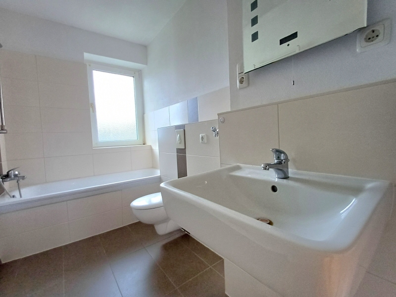 - das Badezimmer ist mit modernen Fliesen und neuen Sanitärobjekten ausgestattet, verfügt über eine Badewanne sowie ein Fenster