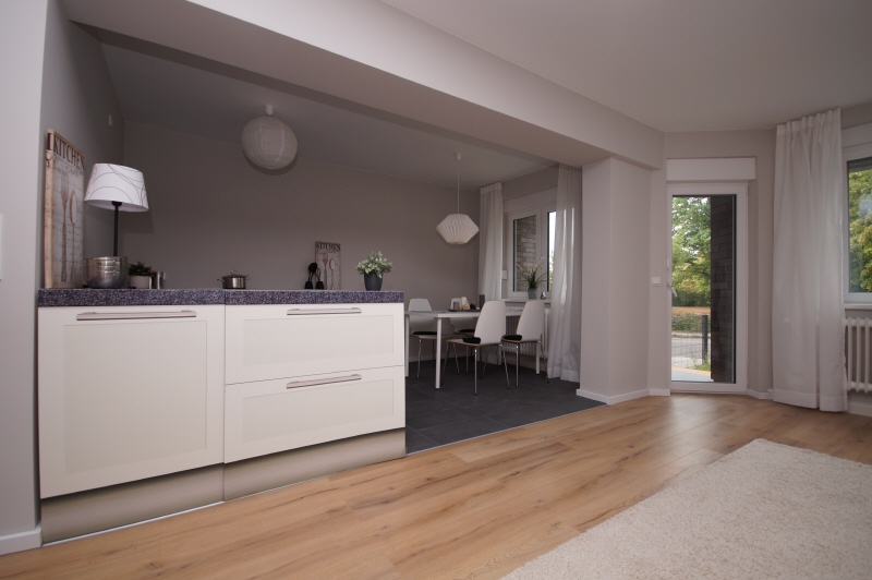- Die Wohnung ist mit modernem Laminat ausgelegt